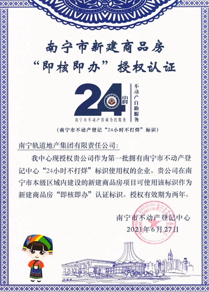 • 公司獲得南寧市新建商品房“即核即辦”授權(quán)認(rèn)證