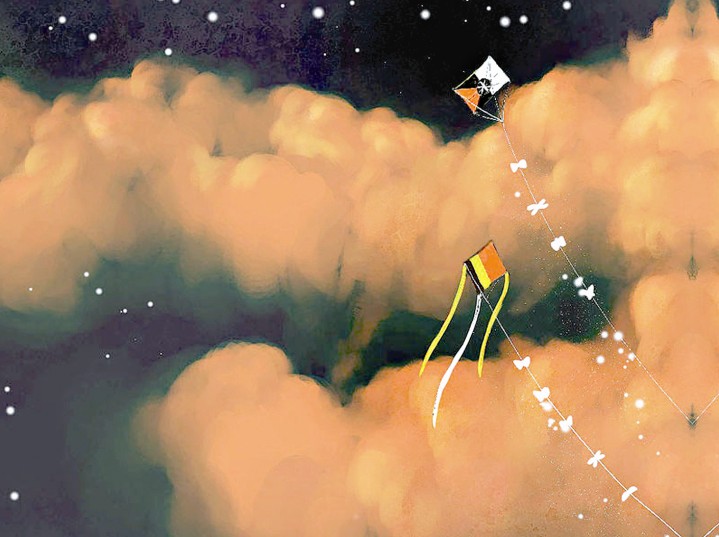 小囡囡就這么仰望著那個(gè)高掛在天上的風(fēng)箏,她也不去追,不去搶。因?yàn)榭粗L(fēng)箏還在天上,心里就還有夢。如果把它拿在手上,可能,她就再也不會(huì)做夢了?! ?