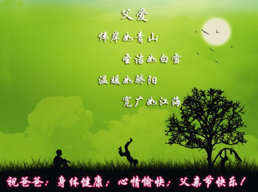 每年的6月第三個(gè)星期天就是父親節(jié),從來(lái)就沒跟老爸表示過什么,從小老爸對(duì)我的愛一直都是默默地,無(wú)言的,深沉德,不記得有多少次的細(xì)節(jié)讓我感動(dòng)。