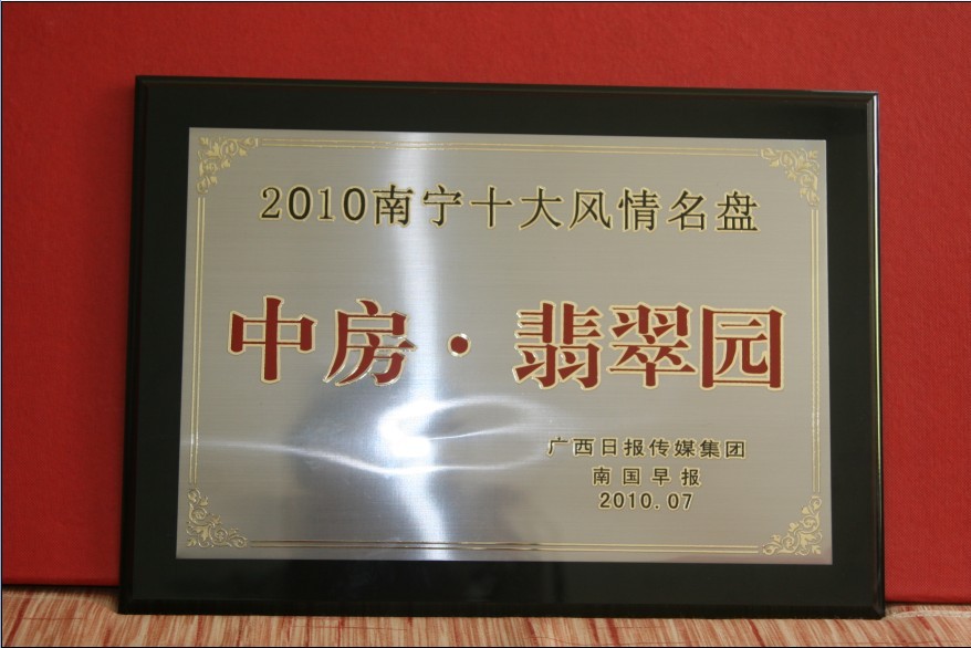 熱烈祝賀中房·翡翠園榮獲“2010南寧十大風(fēng)情名盤(pán)”稱(chēng)號(hào)