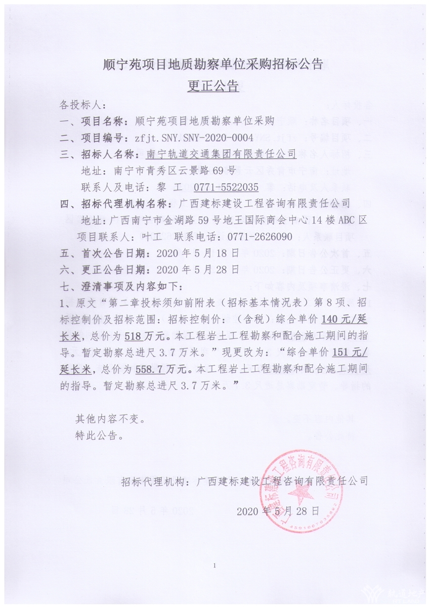 順寧苑項目地質(zhì)勘察單位采購招標(biāo)公告更正公告